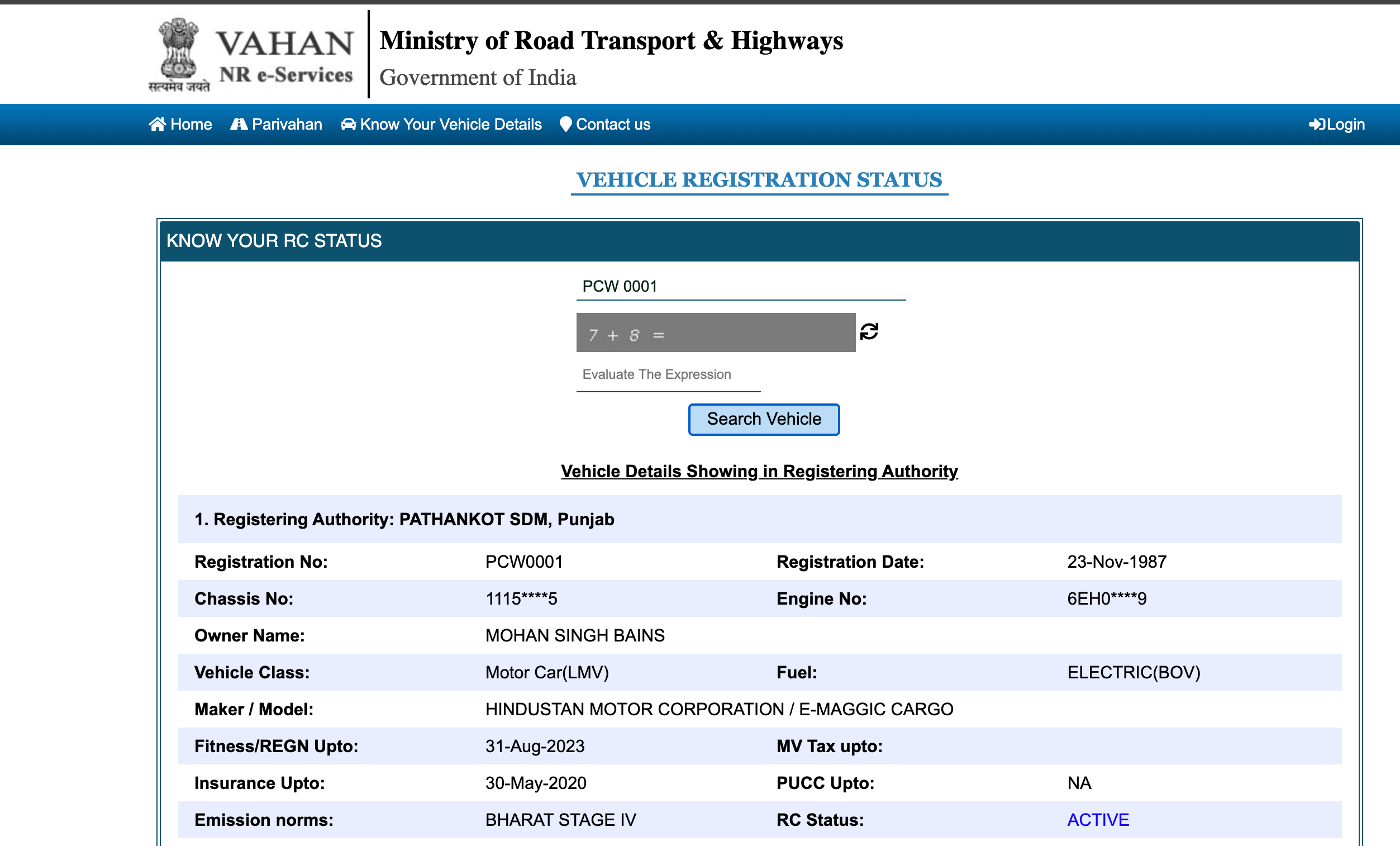 vehicle registration no