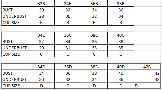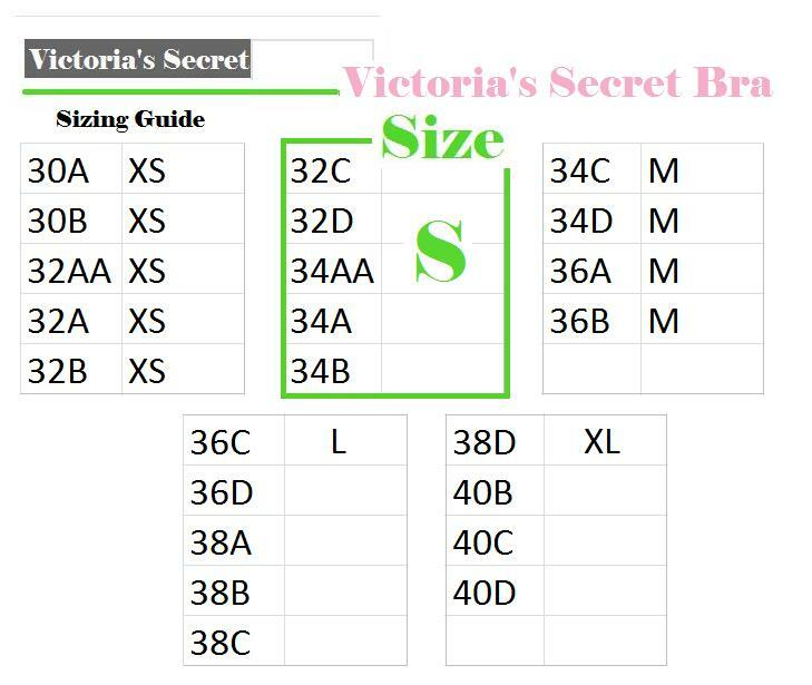 victoria secret size chart bra
