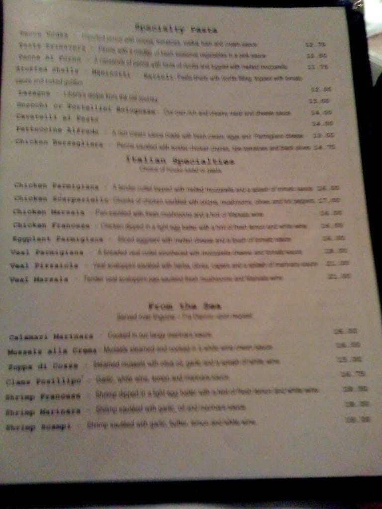 villa italia menu