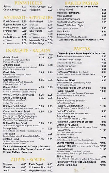 vincenzo's menu