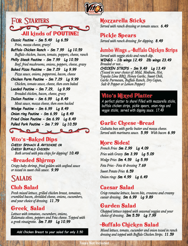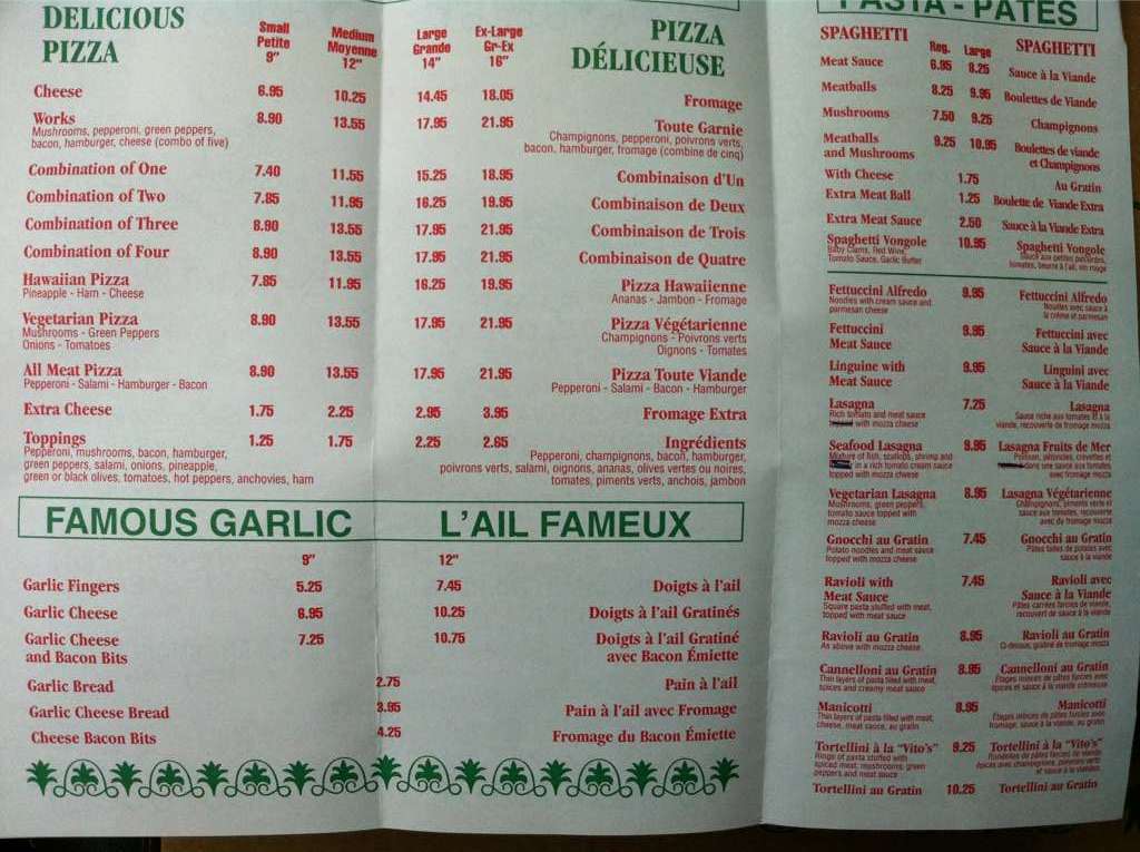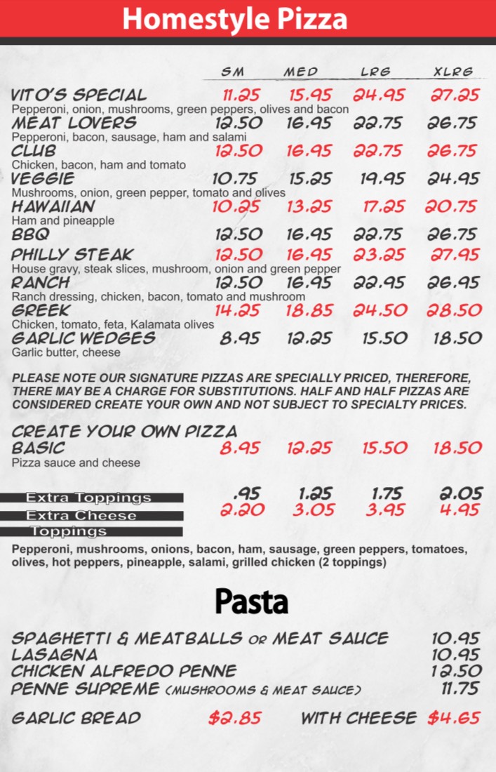 vito's pizza menu