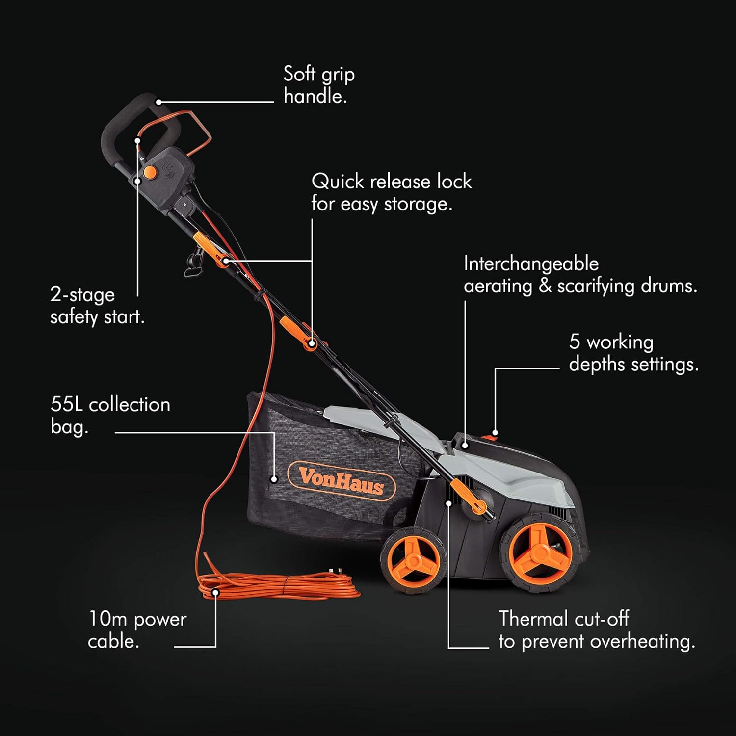 vonhaus 2 in 1 lawn scarifier and aerator