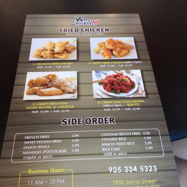 vons chicken menu