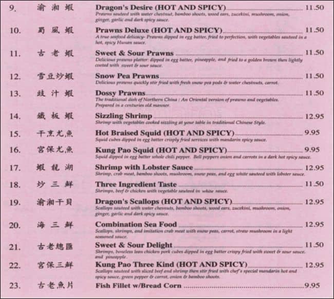 wah sang menu