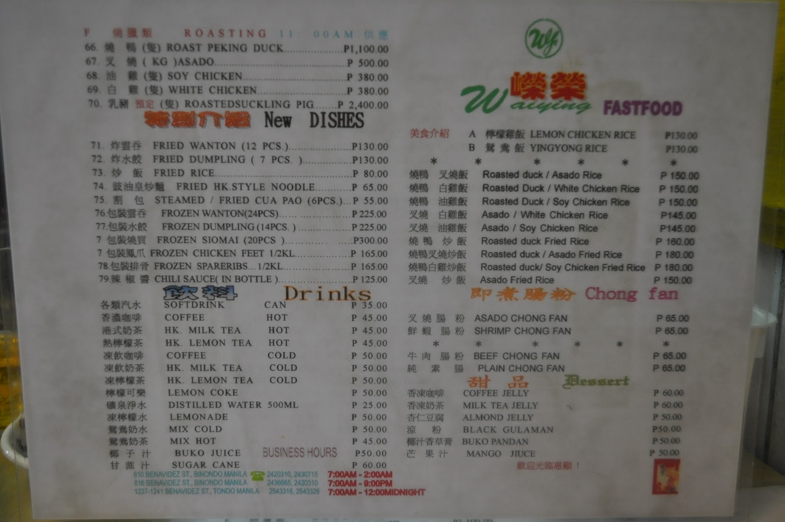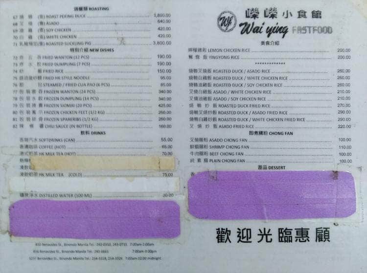 wai ying menu