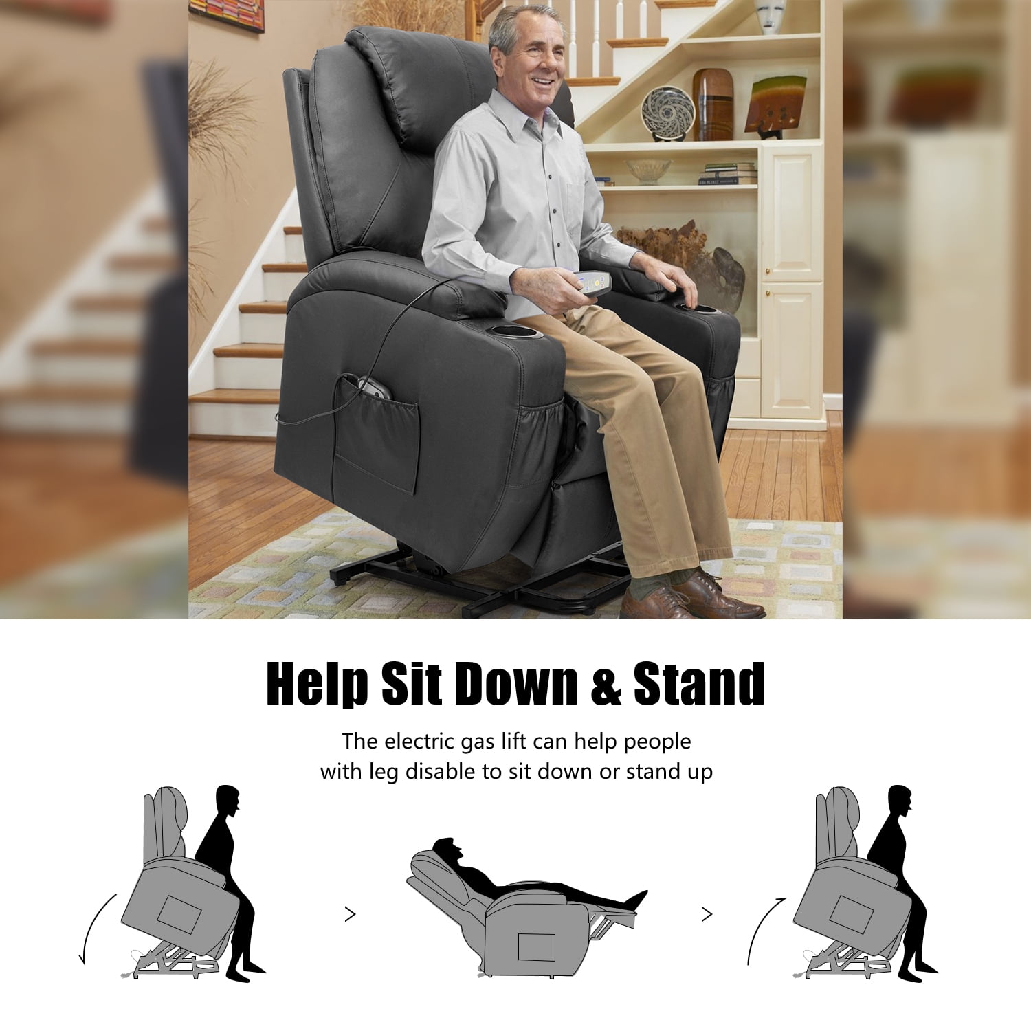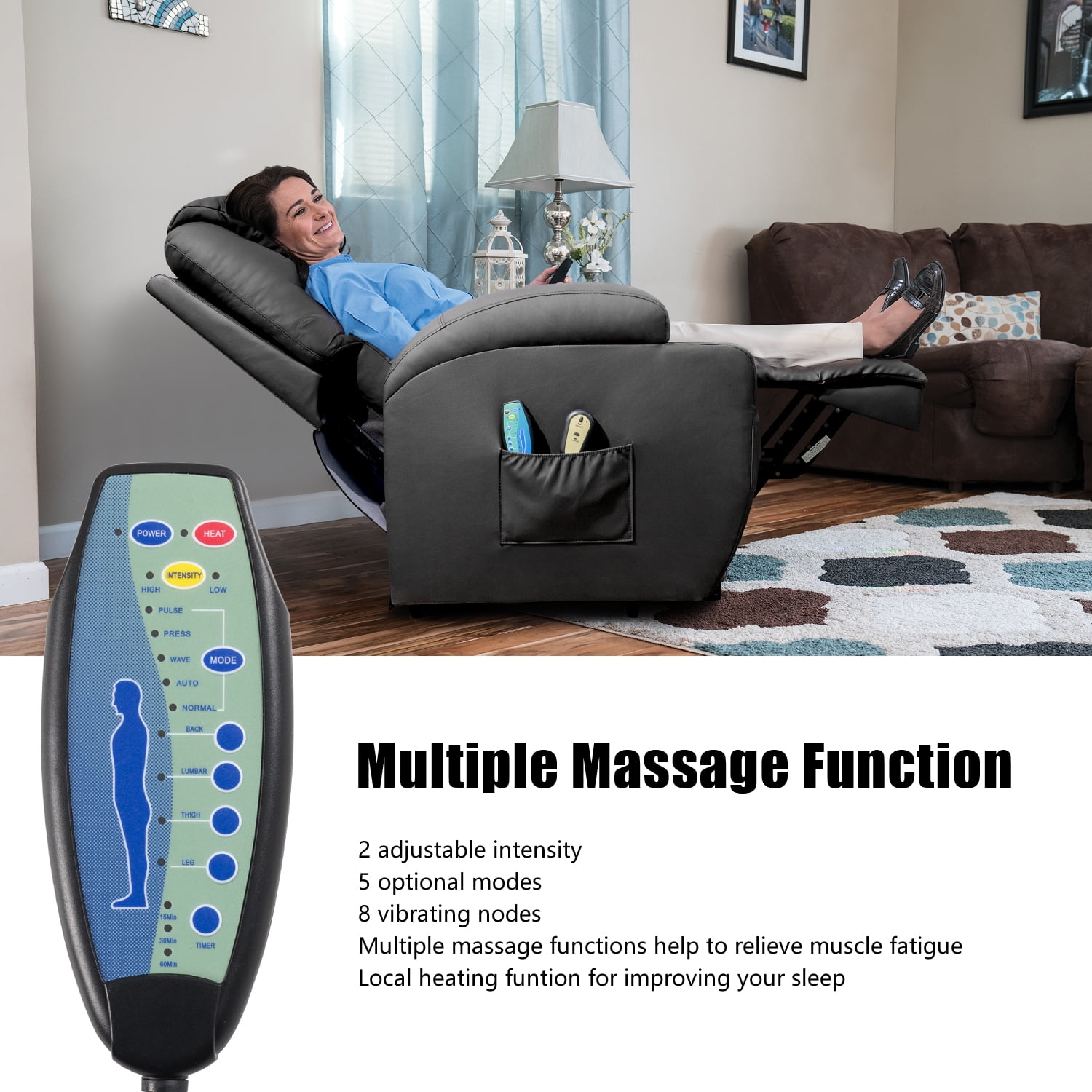 walnew power lift recliner with massage and heat