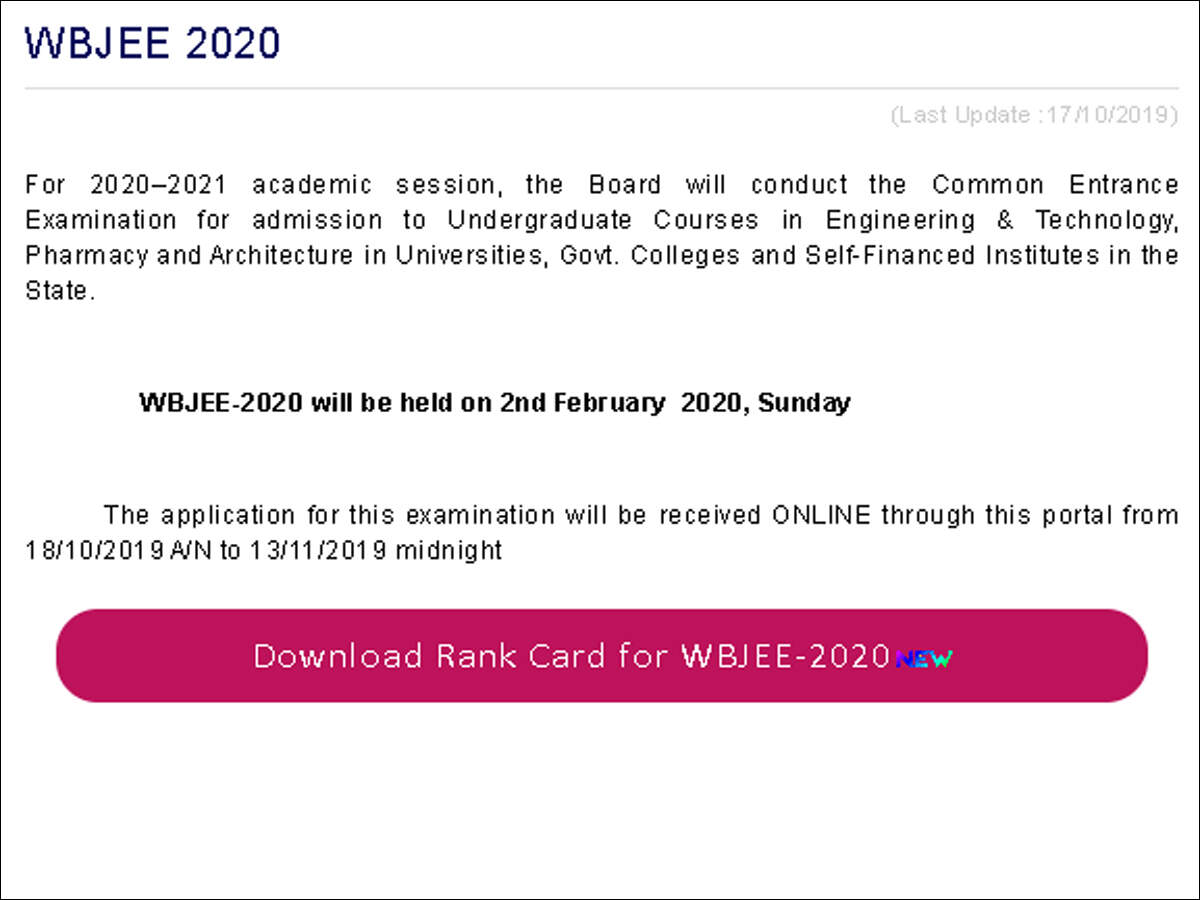 wbjee 2020 result