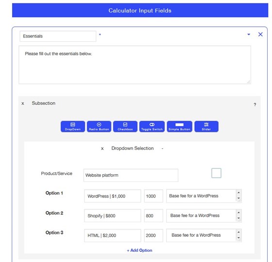 website cost calculator