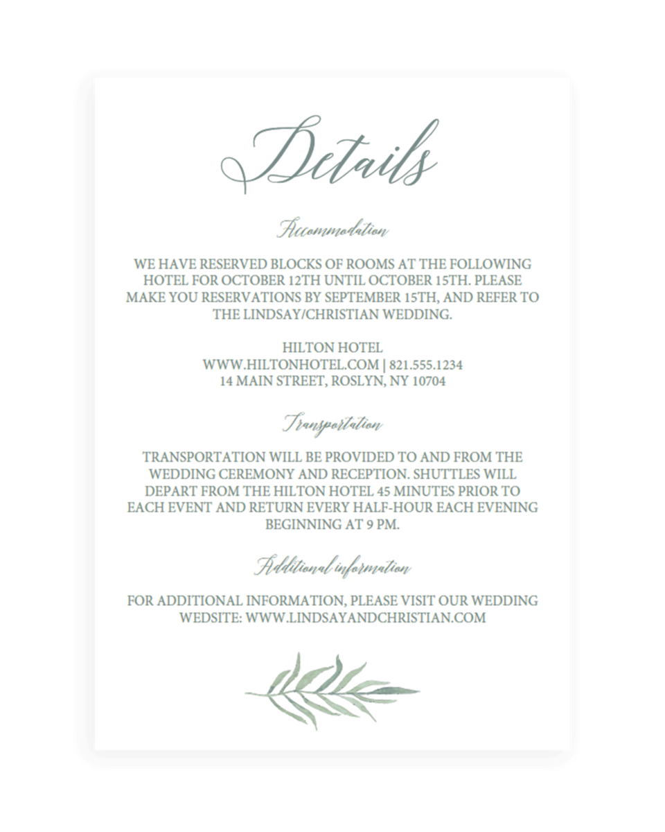 wedding detail card