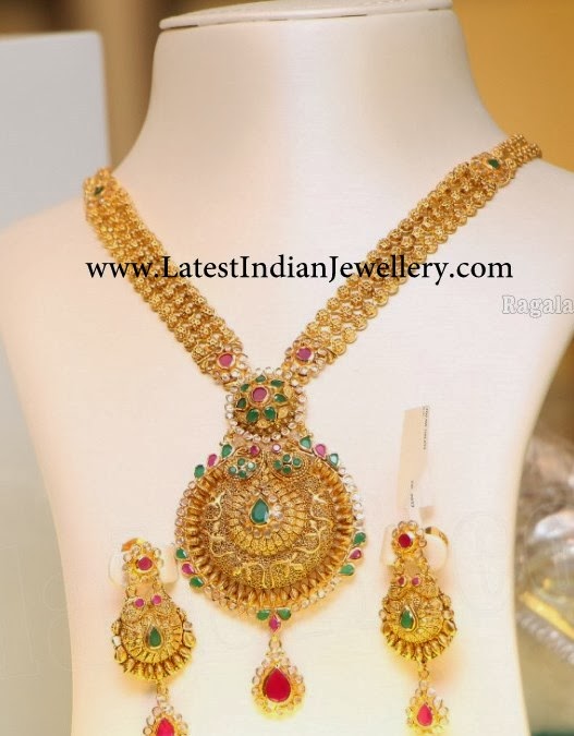 wedding gold long necklace designs