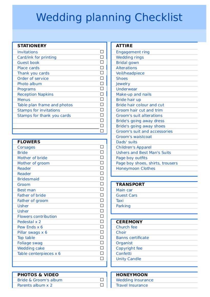 wedding items list for bride