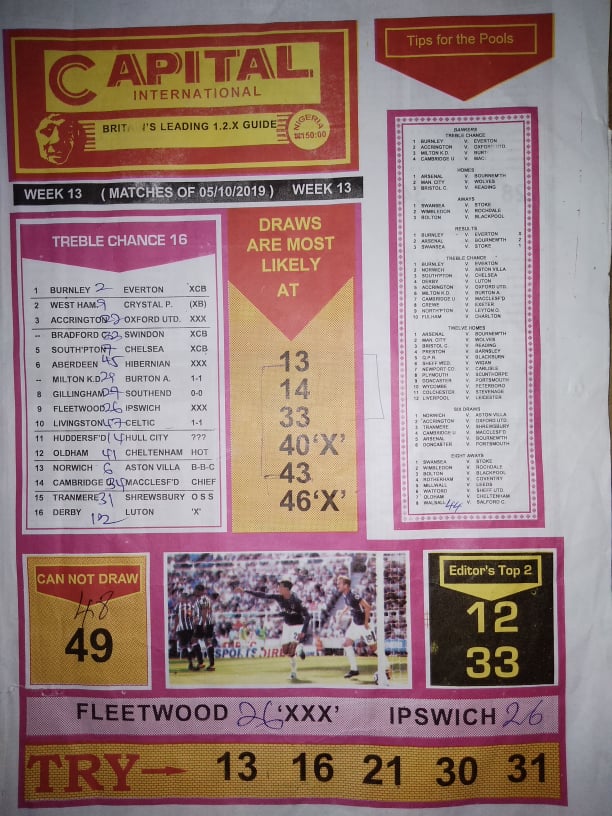 week 13 pool fixtures