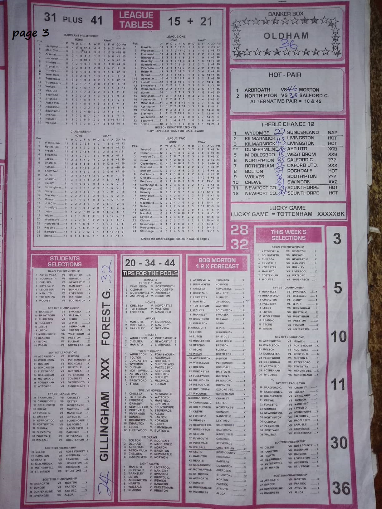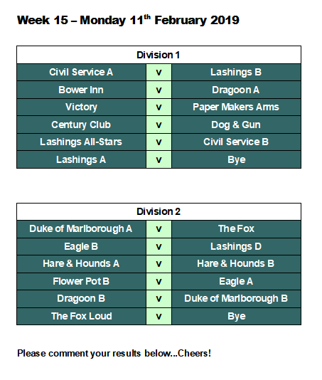week 15 pool fixtures