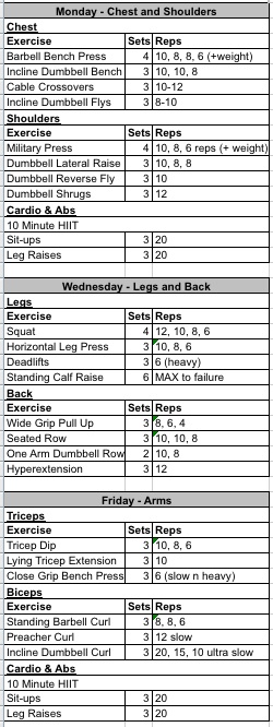weight lifting routine