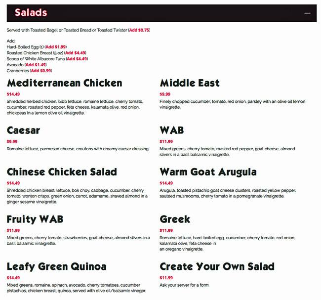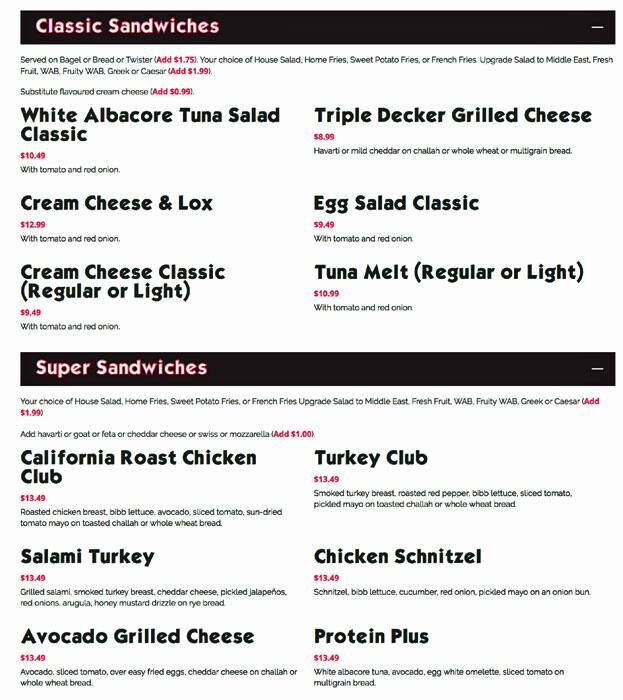 what a bagel menu