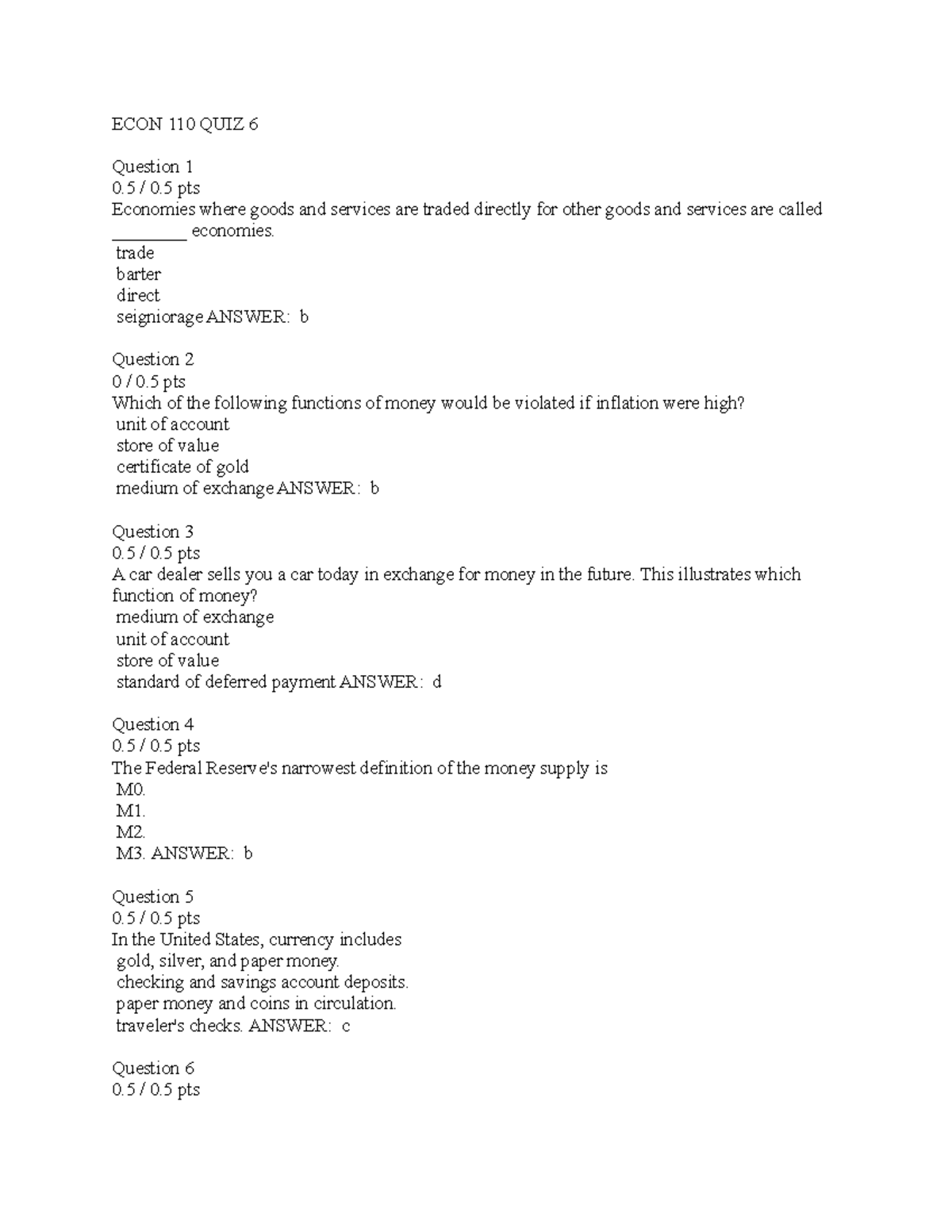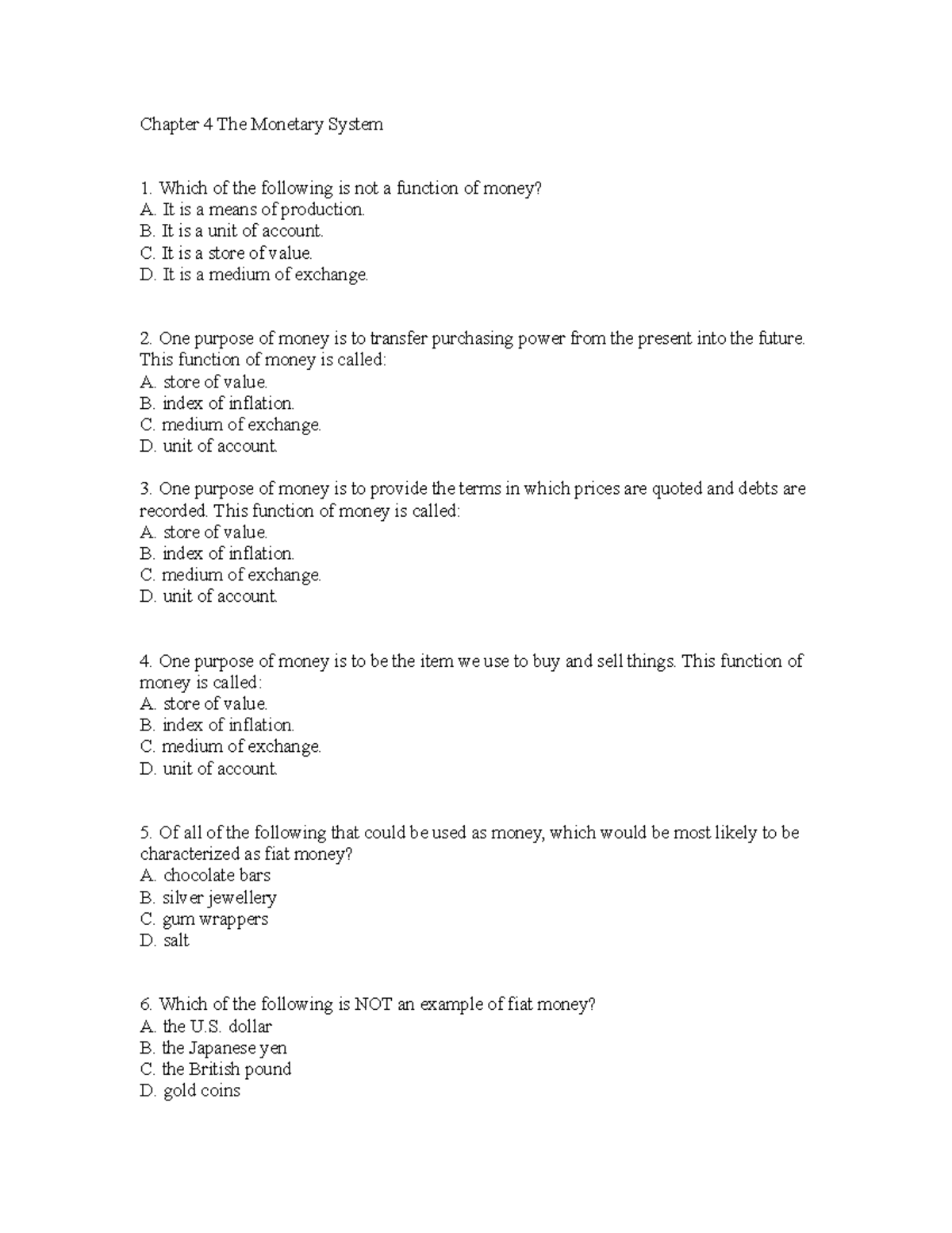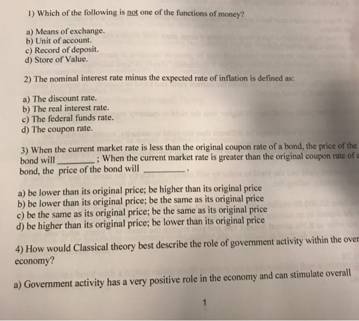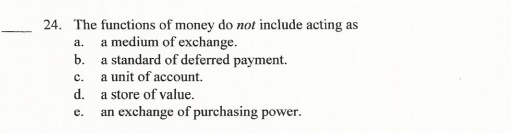 which of the following is not a function of money