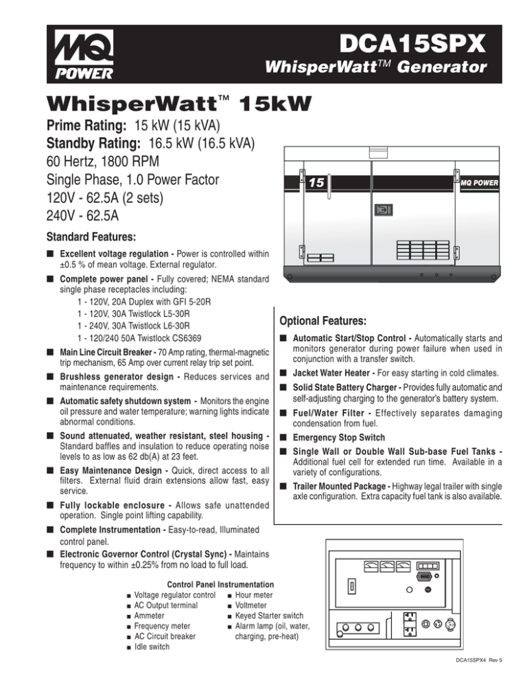 whisperwatt 15kw generator