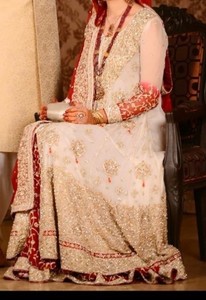 white anarkali dress with red dupatta