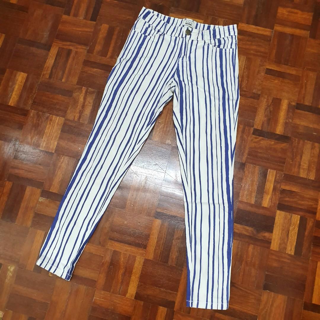 white and blue striped pants