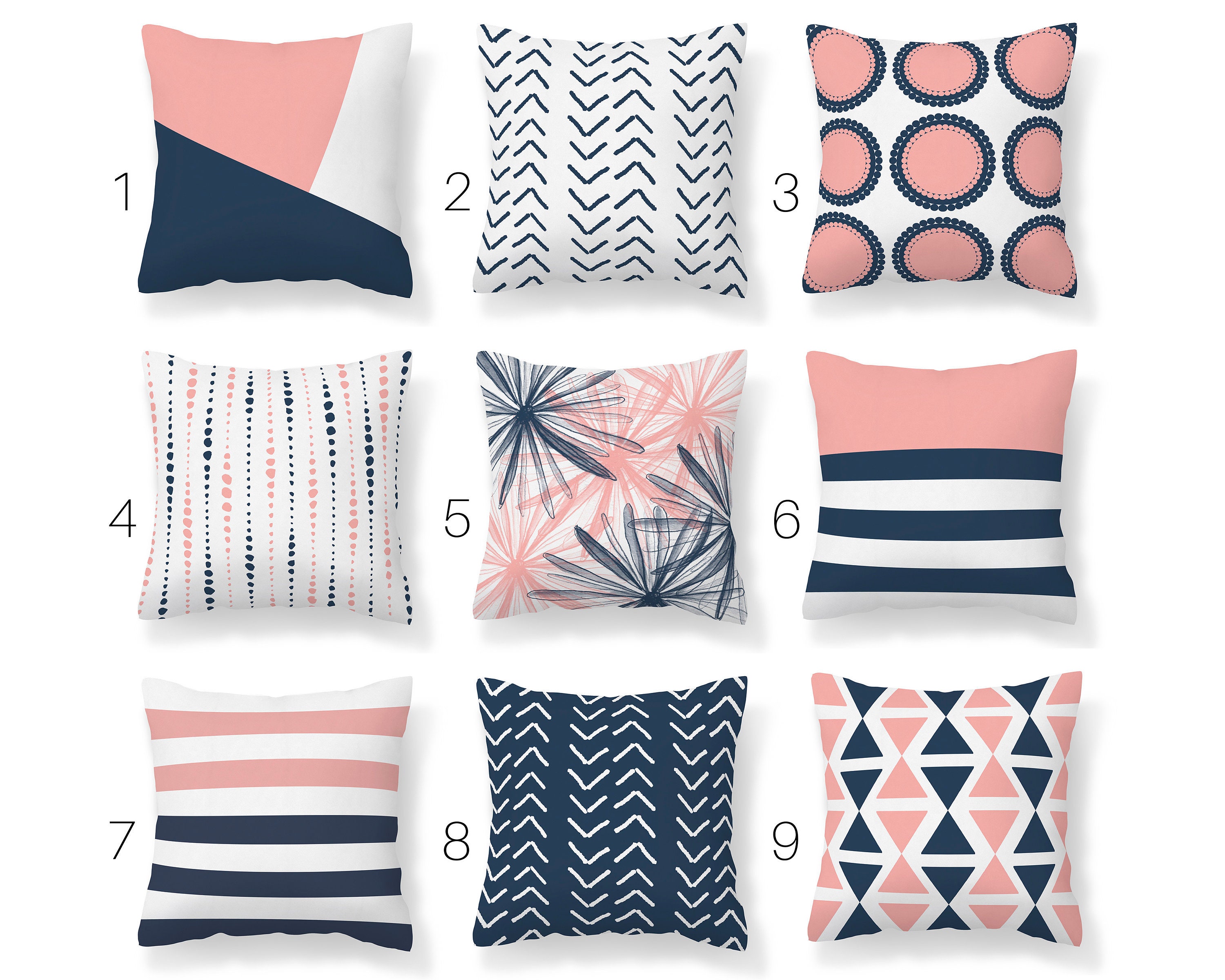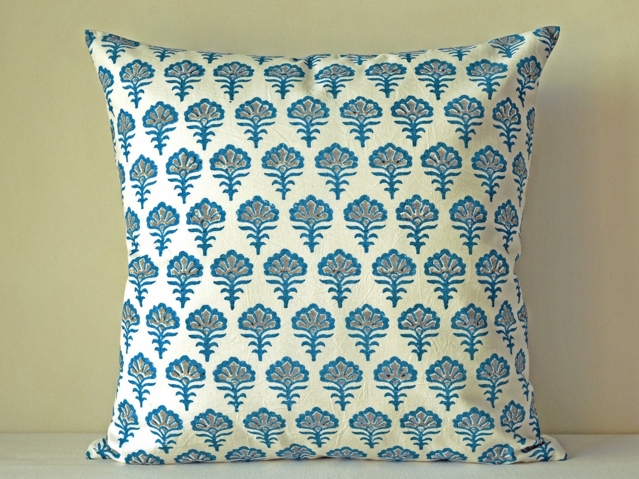 white and blue throw pillows