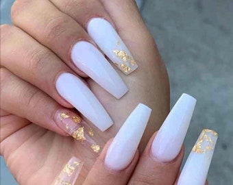 white and gold acrylic nails