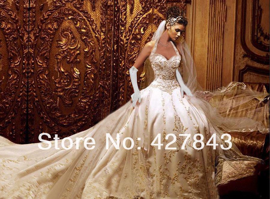 white and gold wedding dress