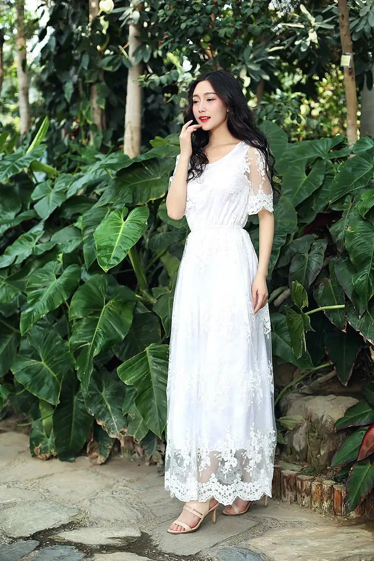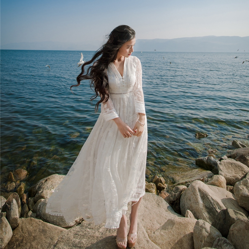 white boho dress long