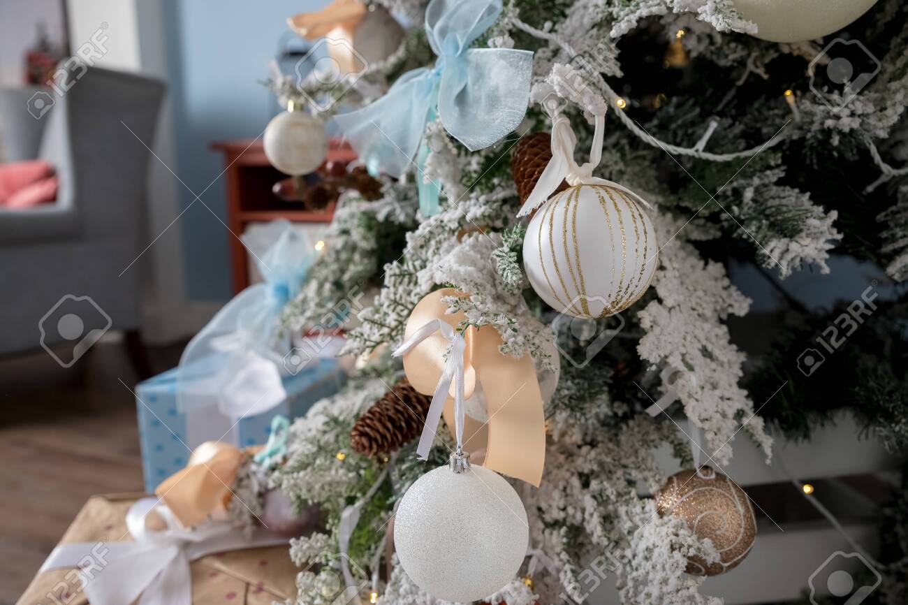 white bows for christmas tree
