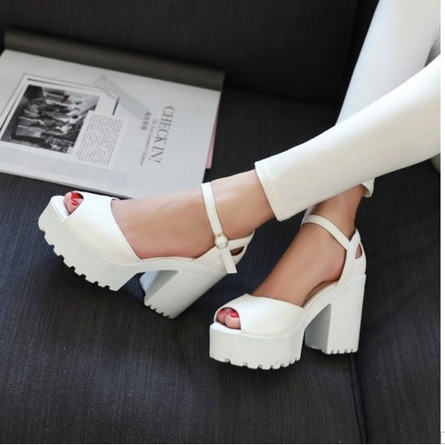 white chunky platform heels