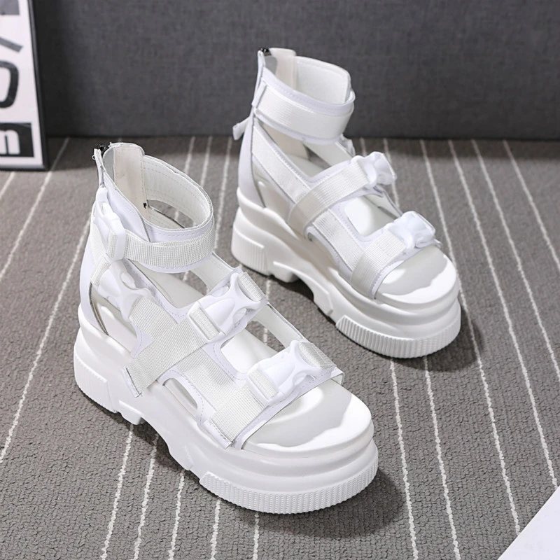 white chunky sandals