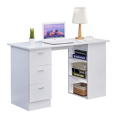 white computer desk with drawers