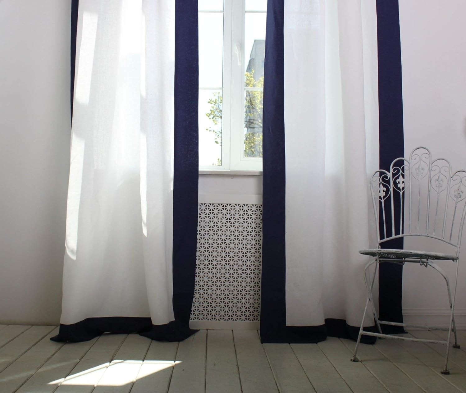 white curtains with black trim