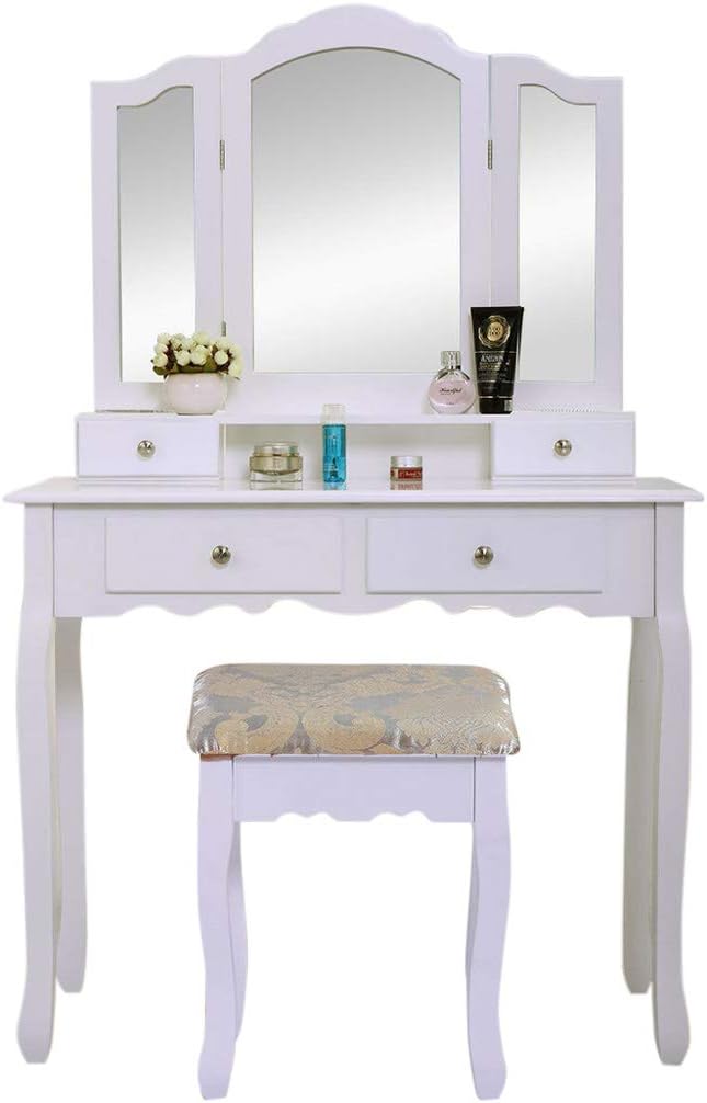 white desk with mirror