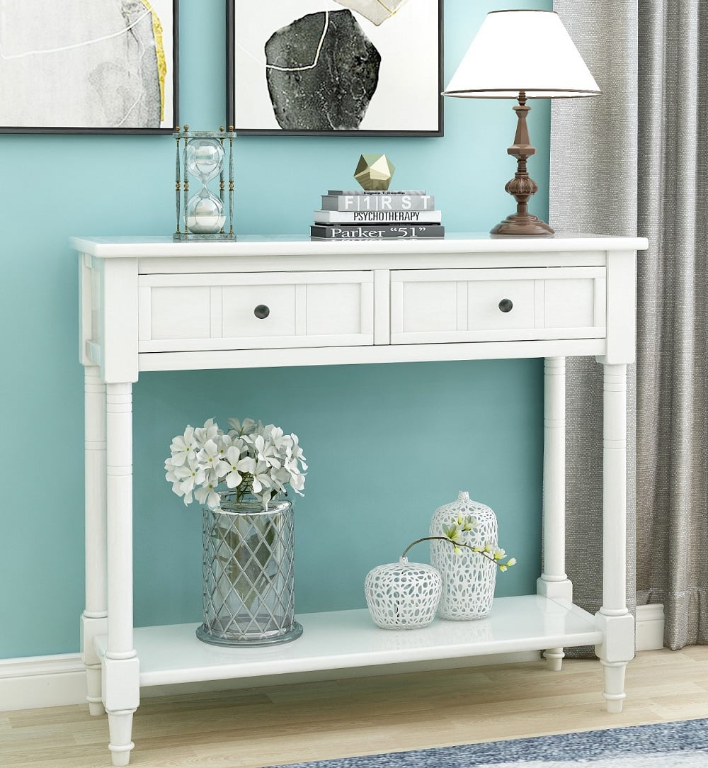 white entryway table