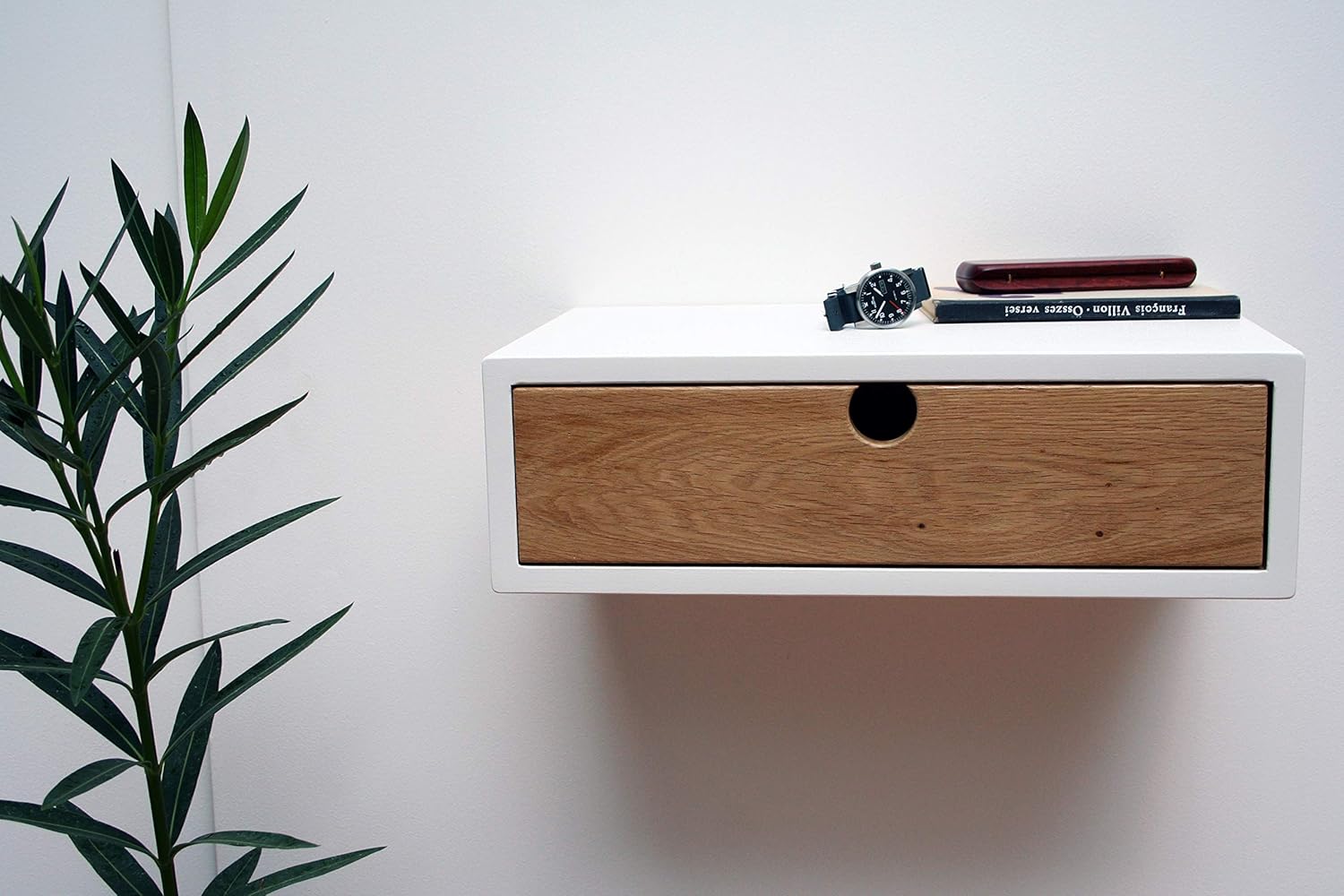 white floating nightstand