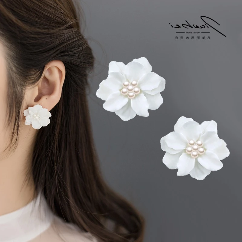 white flower earrings