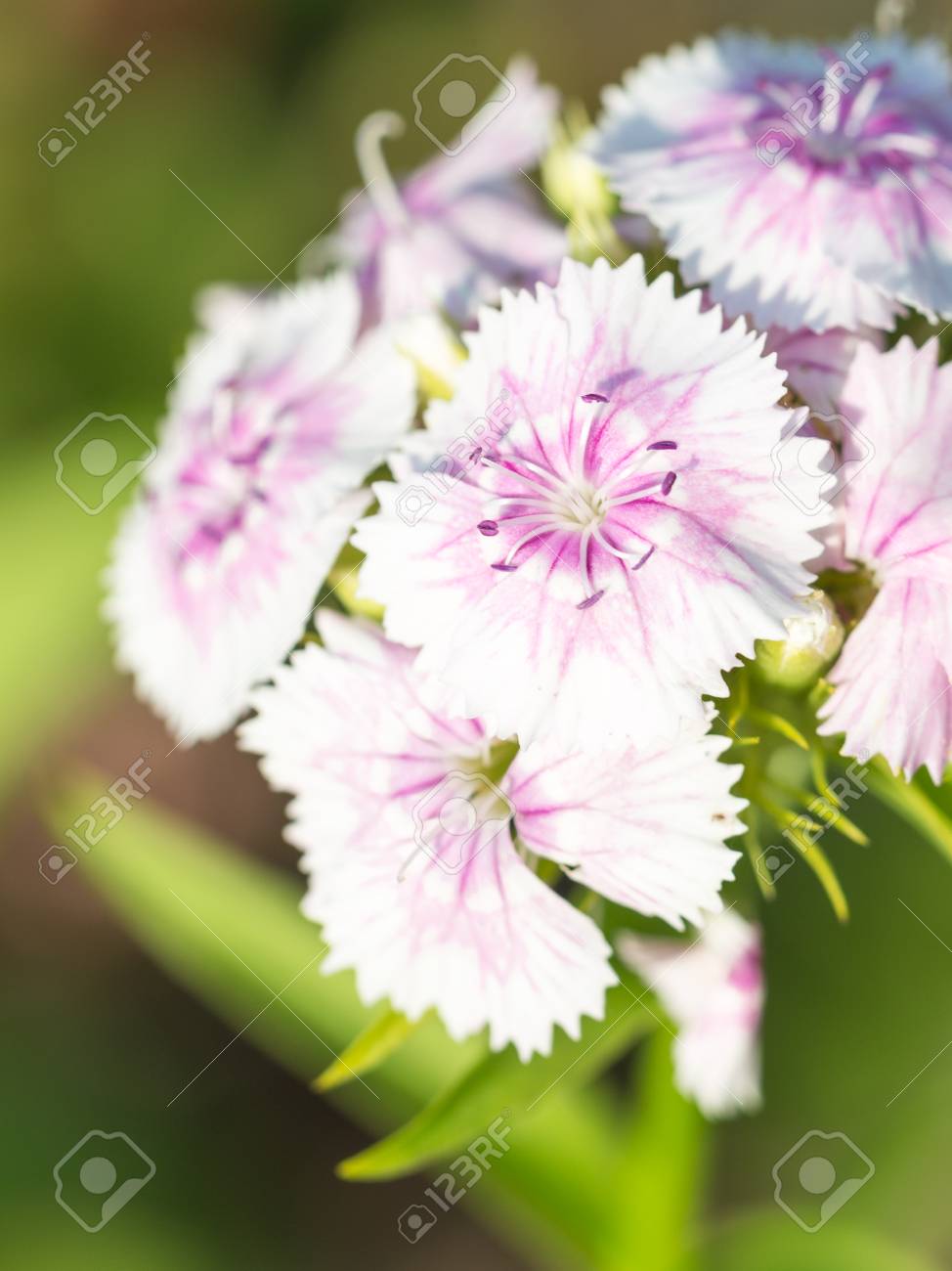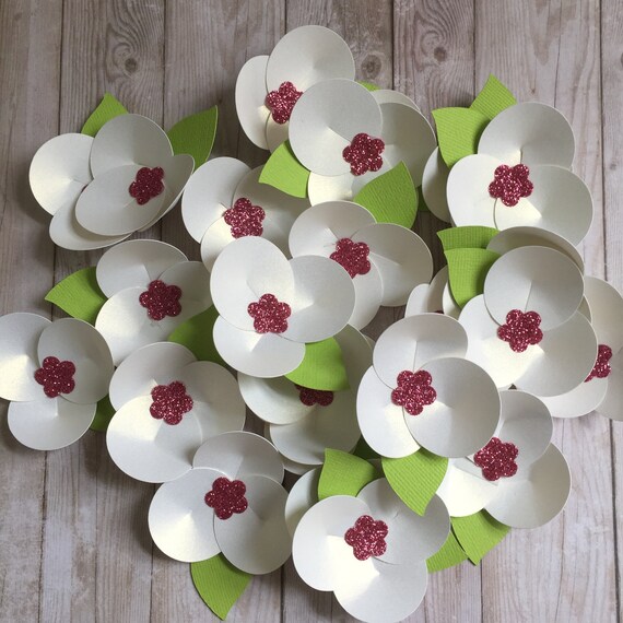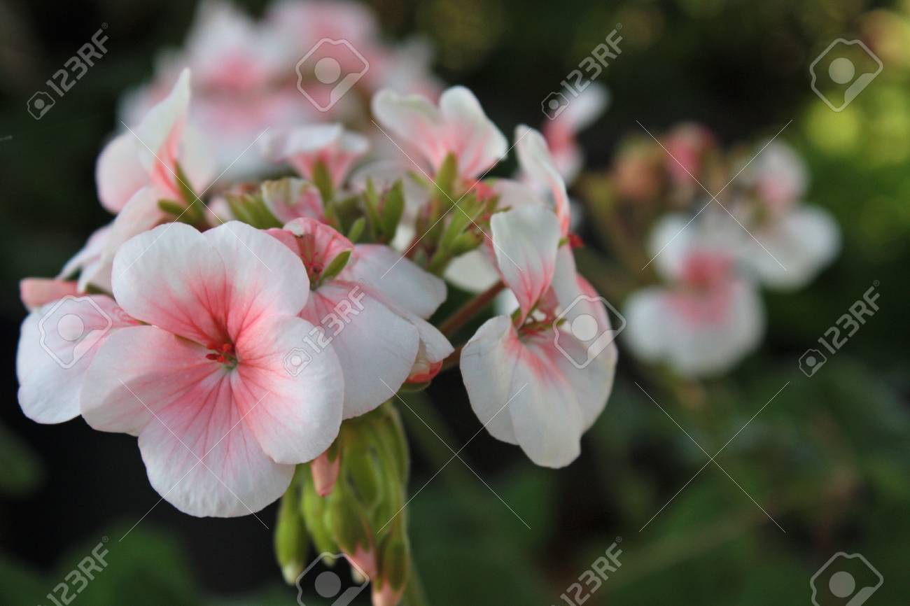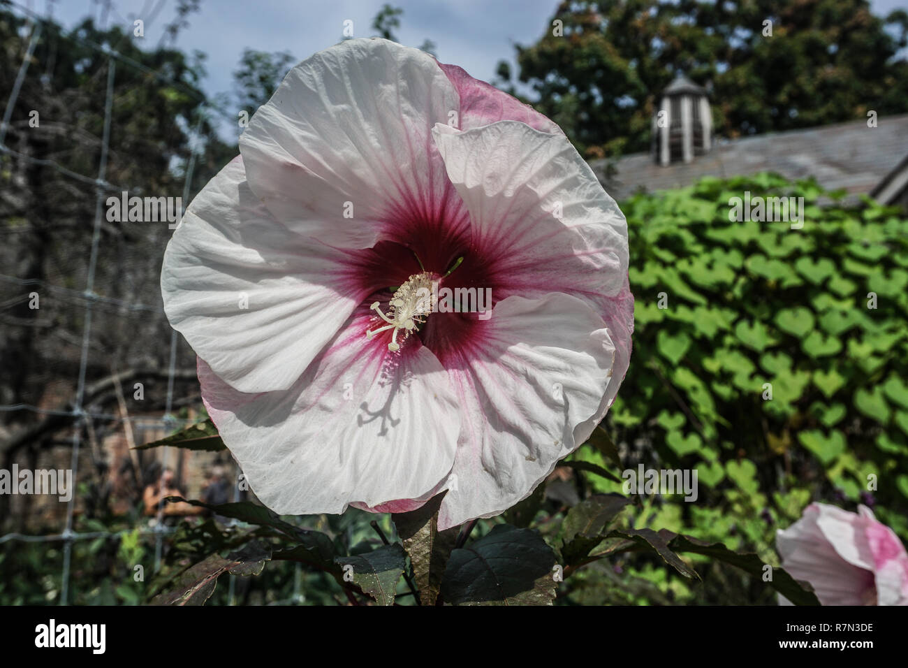white flower with pink center