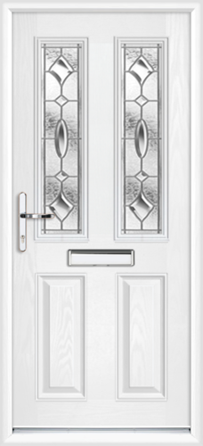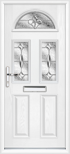 white front door with glass