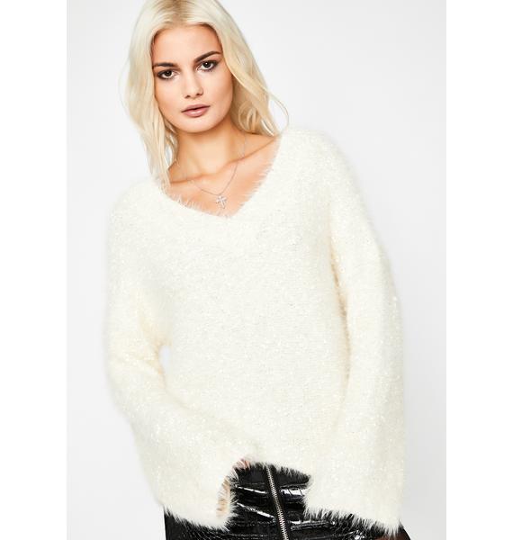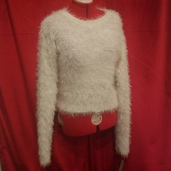 white fuzzy sweater