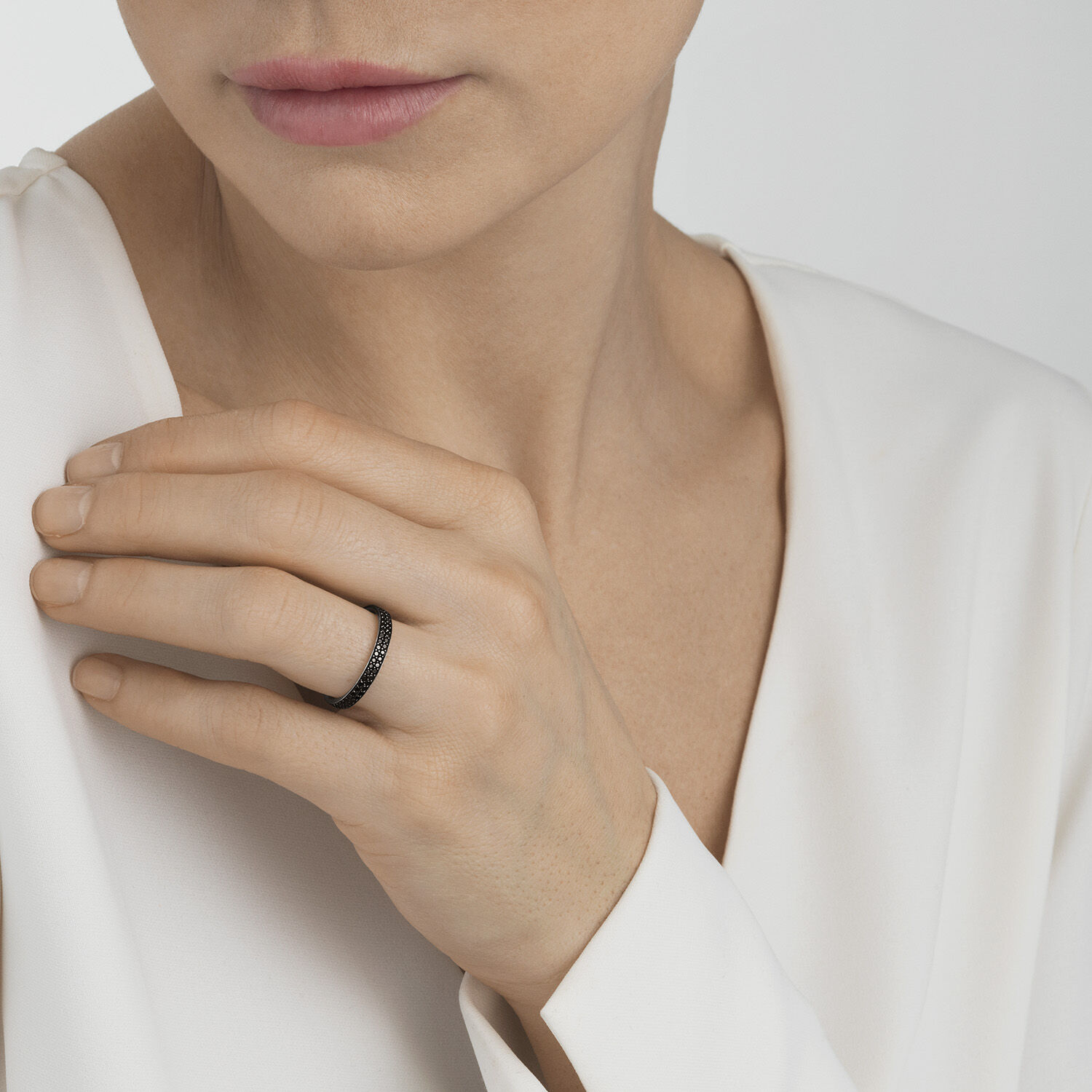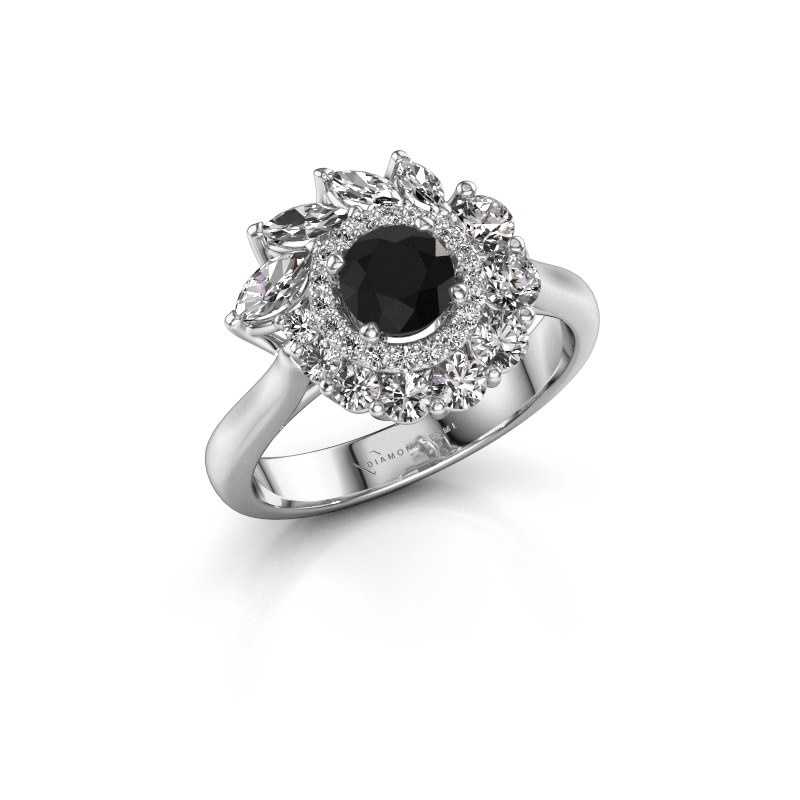 white gold ring with black diamonds