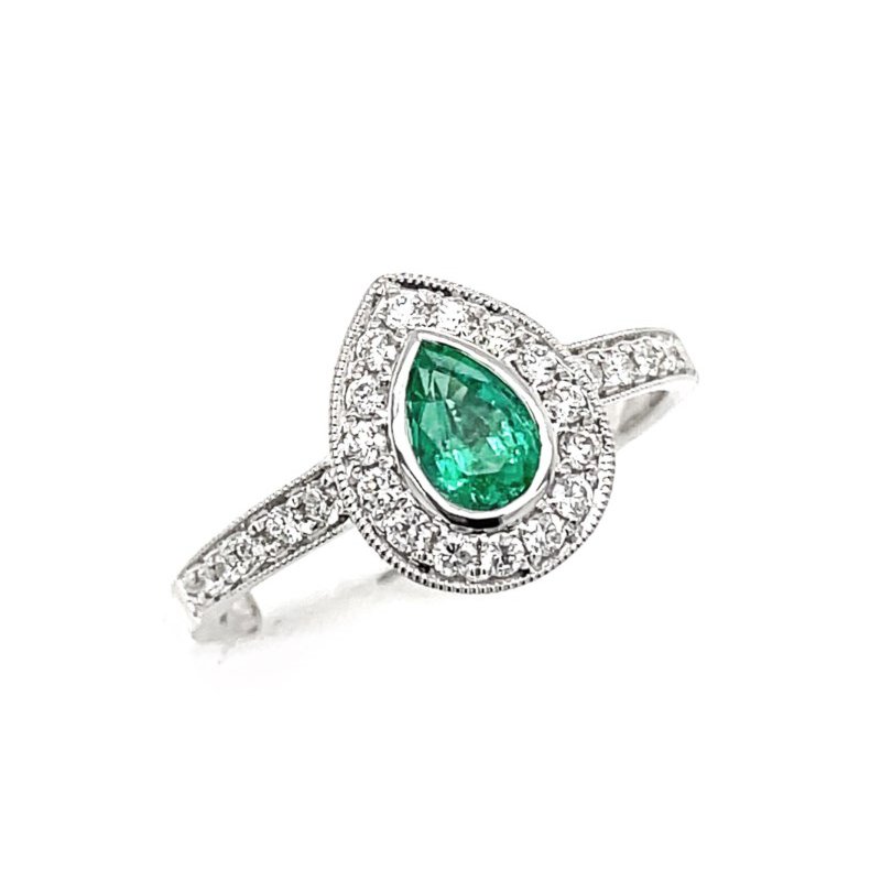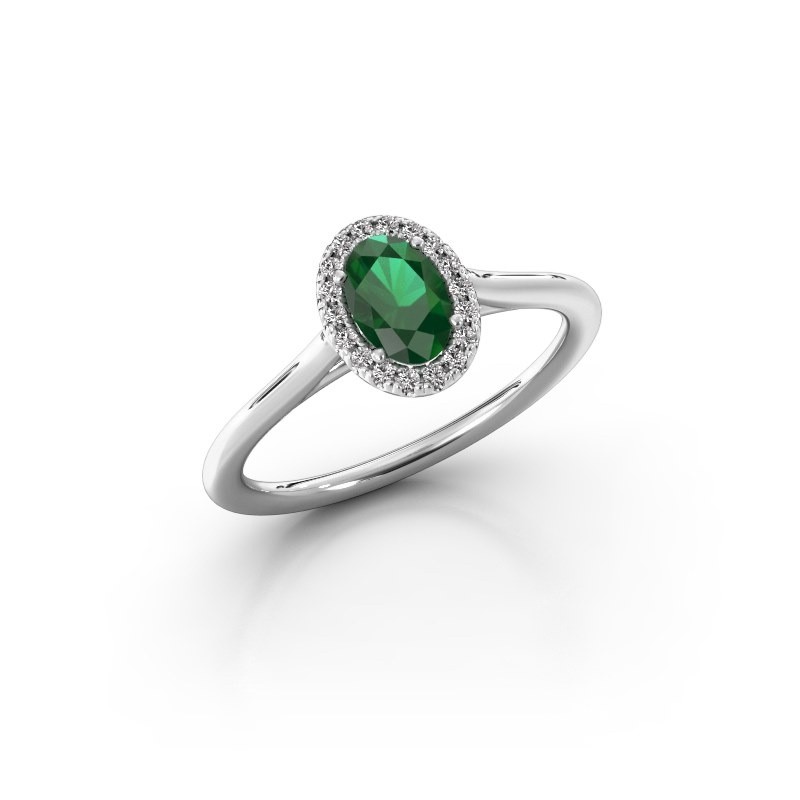 white gold ring with emerald