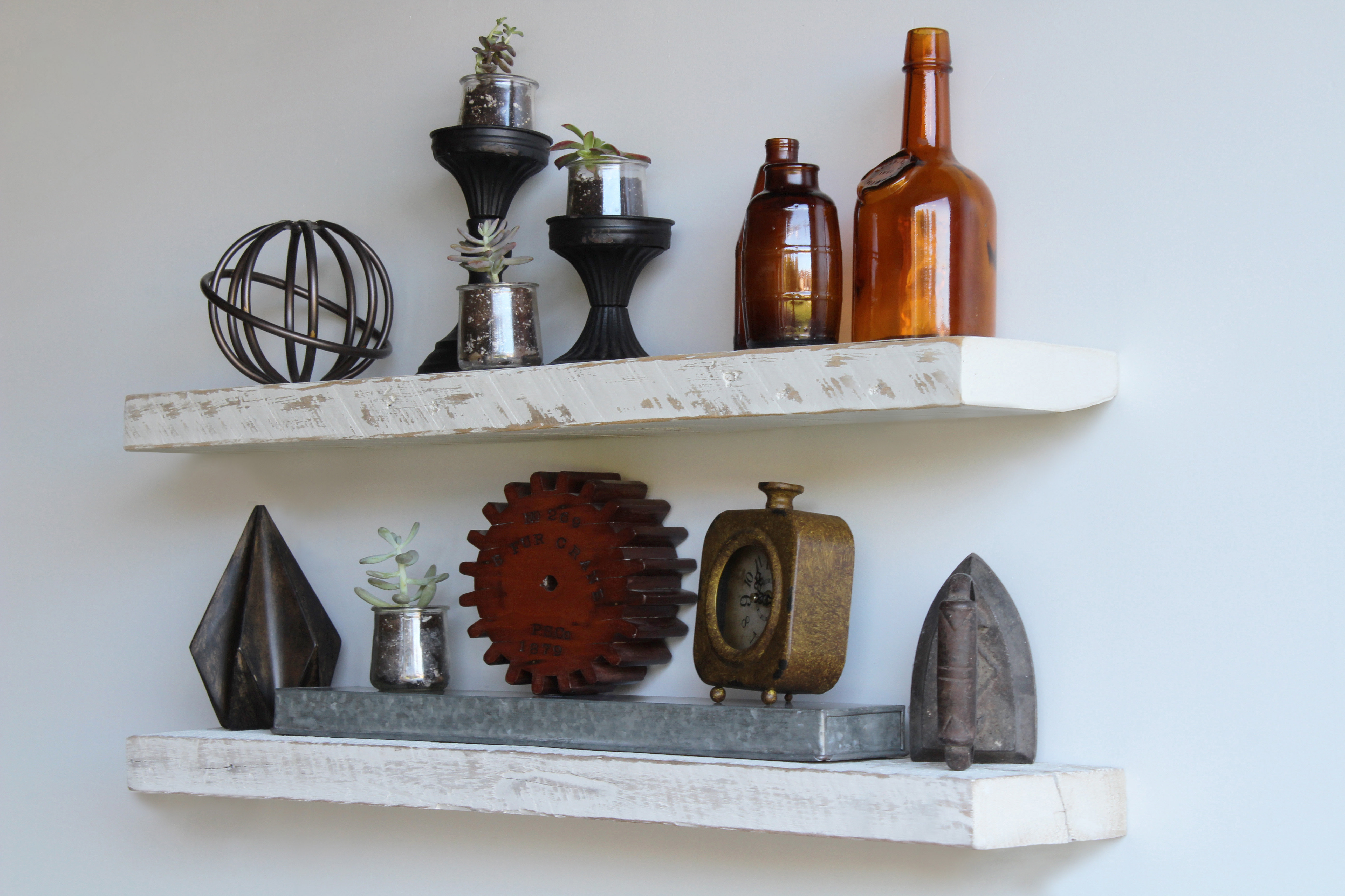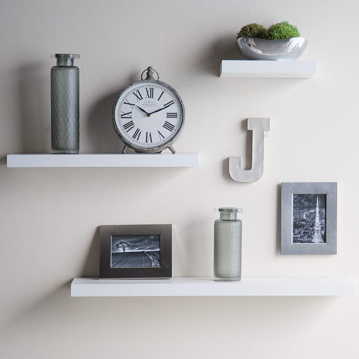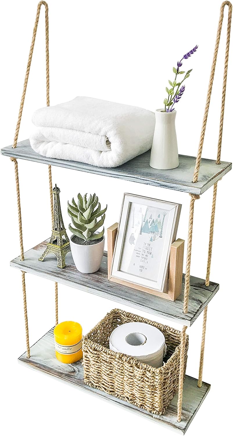 white hanging shelves