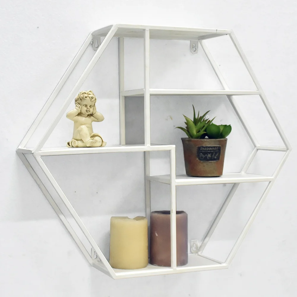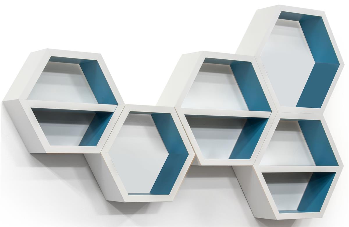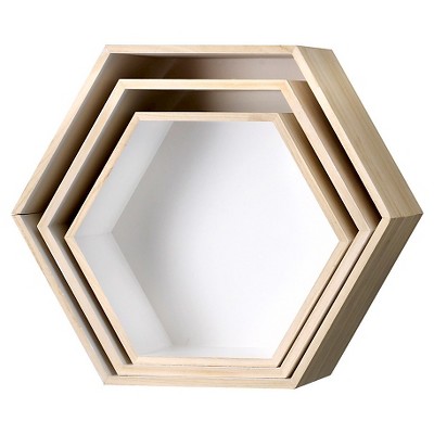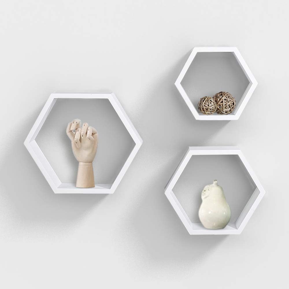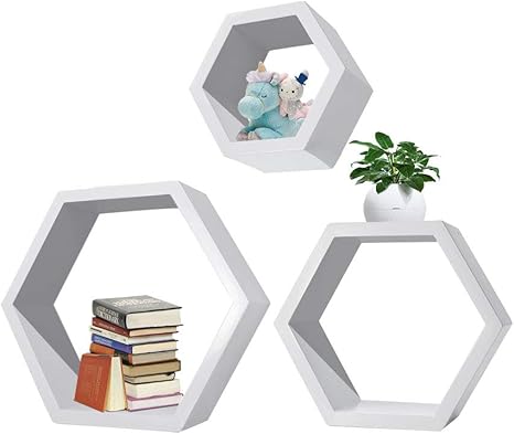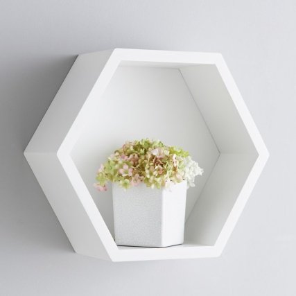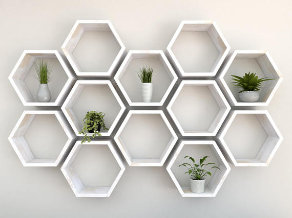 white hexagon shelves