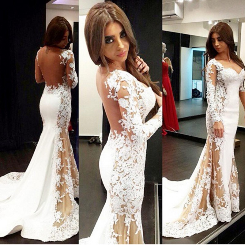 white long sleeve formal dress