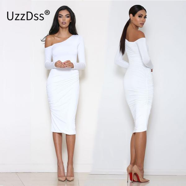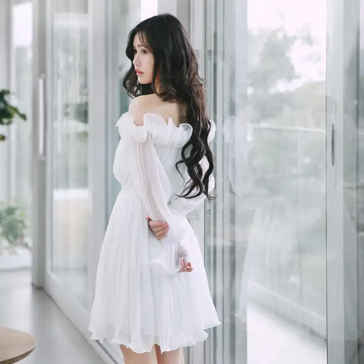 white long sleeve off the shoulder dress