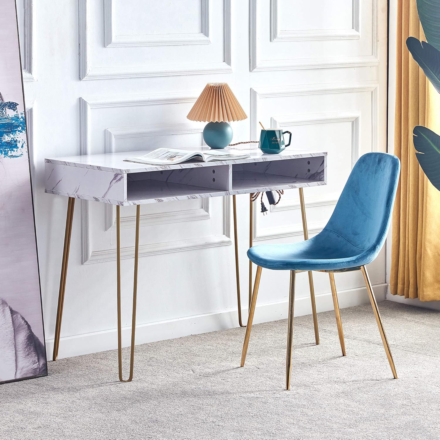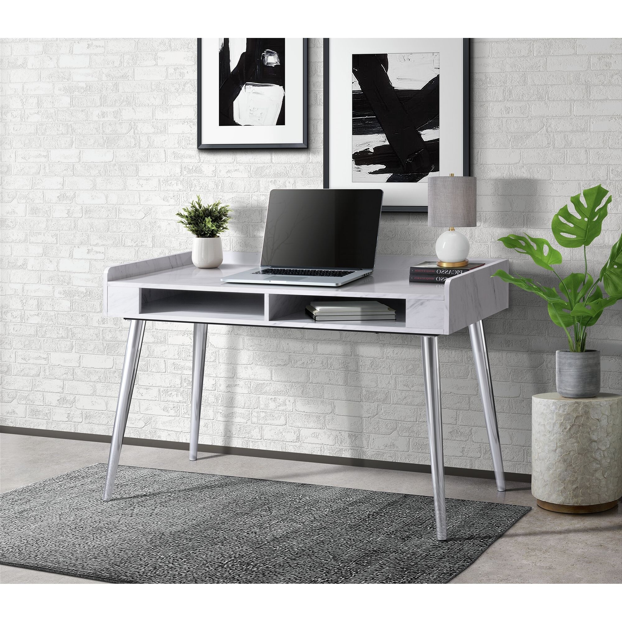 white marble desk