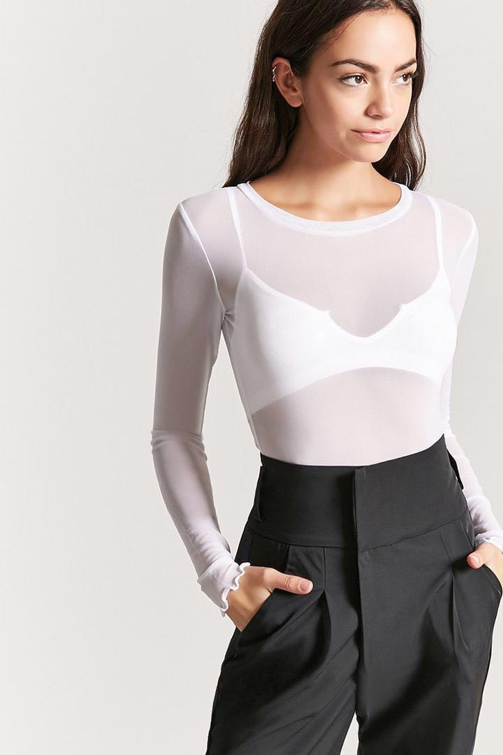 white mesh long sleeve top