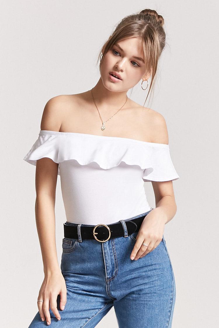 white off the shoulder bodysuit
