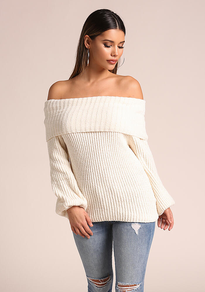 white off the shoulder sweater