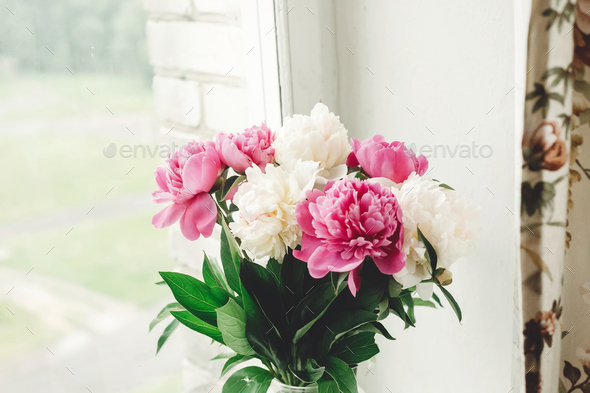 white peonies bouquet